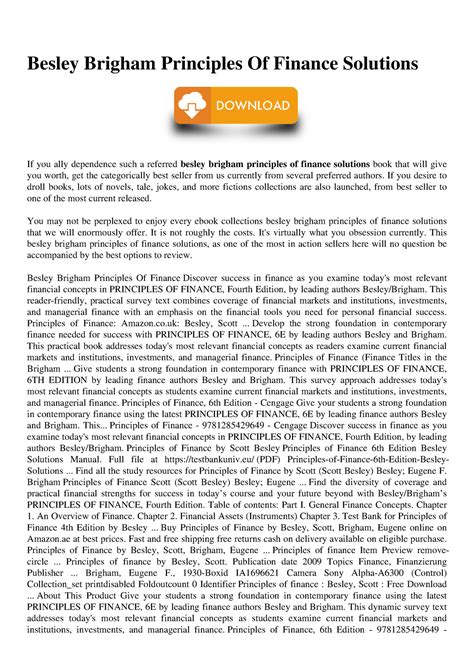 Download online BESLEY BRIGHAM PRINCIPLES OF FINANCE SOLUTIONS iBooks ManyBooks